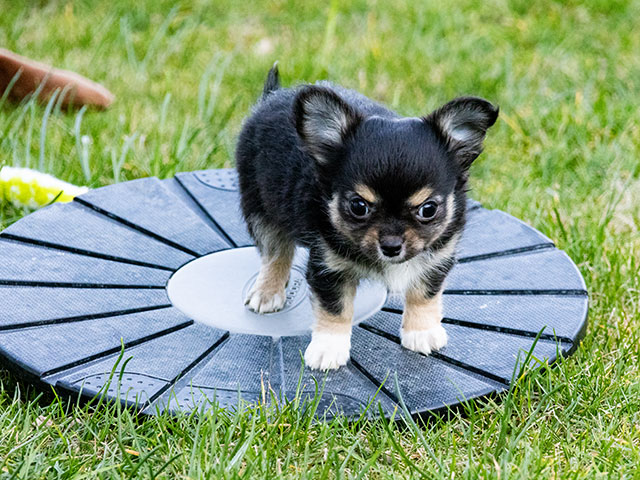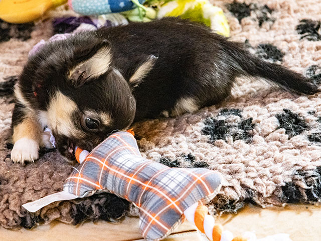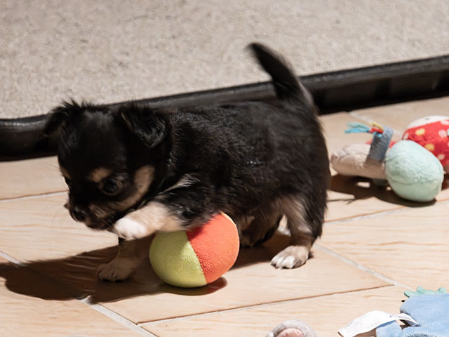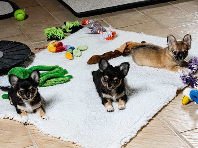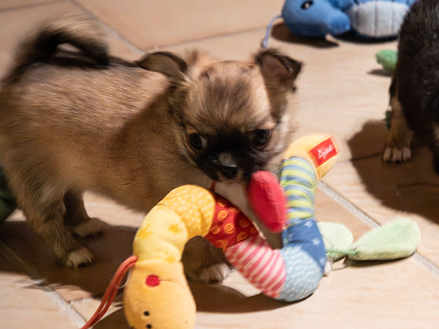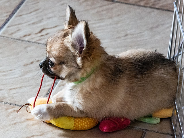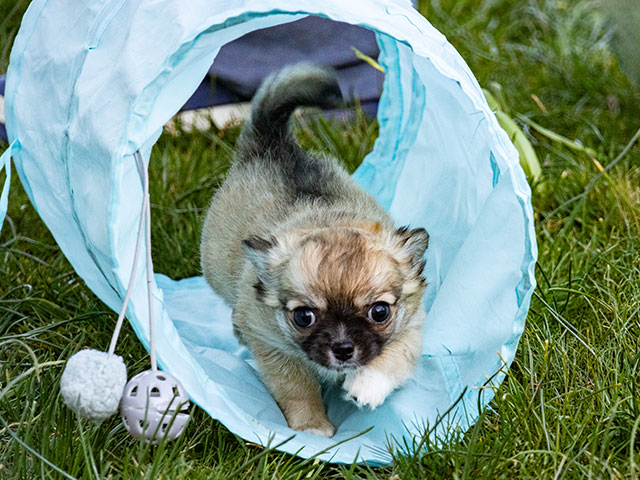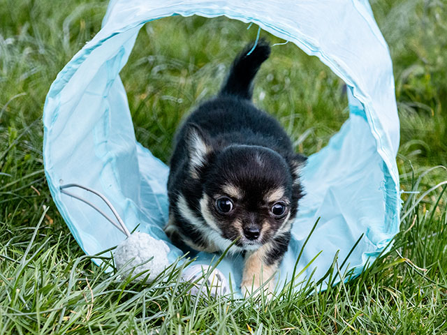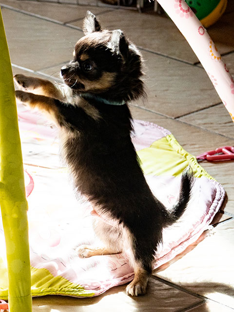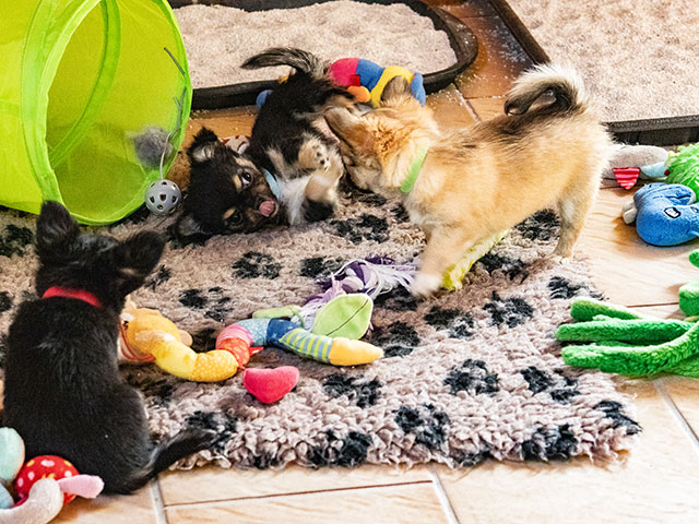 Die Kleinen werden jetzt mobil und sind daher vom Stubennestchen in den Welpenraum umgezogen.