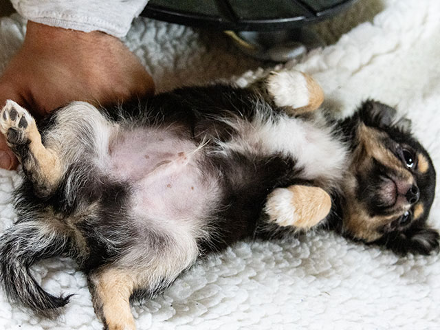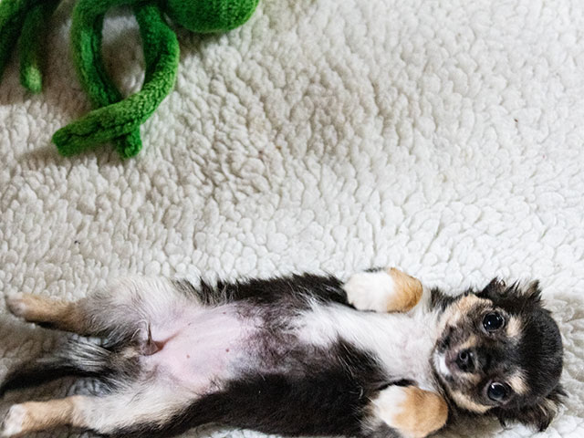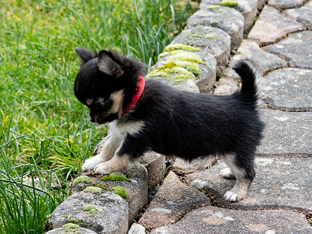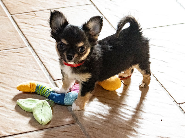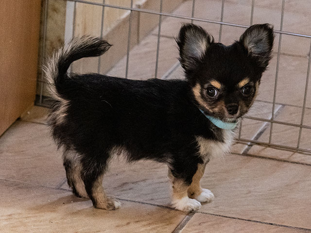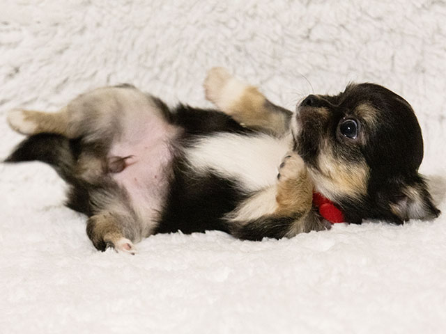 Moon Hündin schwarz/weiß/braun( tricolor)