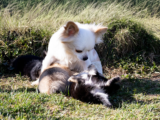 Die Impfung haben die Knirpse letzten Freitag erstaunlich gut verkraftet. Auch waren wir schon 2 Stunden mit den Kleinen im Auto unterwegs. Dies verlief super ohne Angst Pipi/Kaka oder gar erbrechen. So viel wie es das Wetter zulässt, entdecken die M-chens auch die Welt draußen- oft mitten im Rudel.