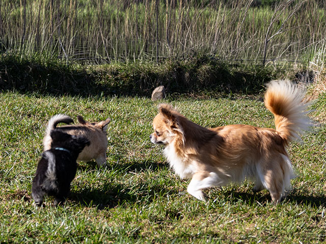 Bei herrlichem Sonnenschein, fühlen sich die Knirpse auch mitten im Rudel sehr wohl. Selbst ein runterkullern vorm Hang oder der eine oder andere Umstubser von den Erwachsenen kann die Stimmung nicht trüben.
